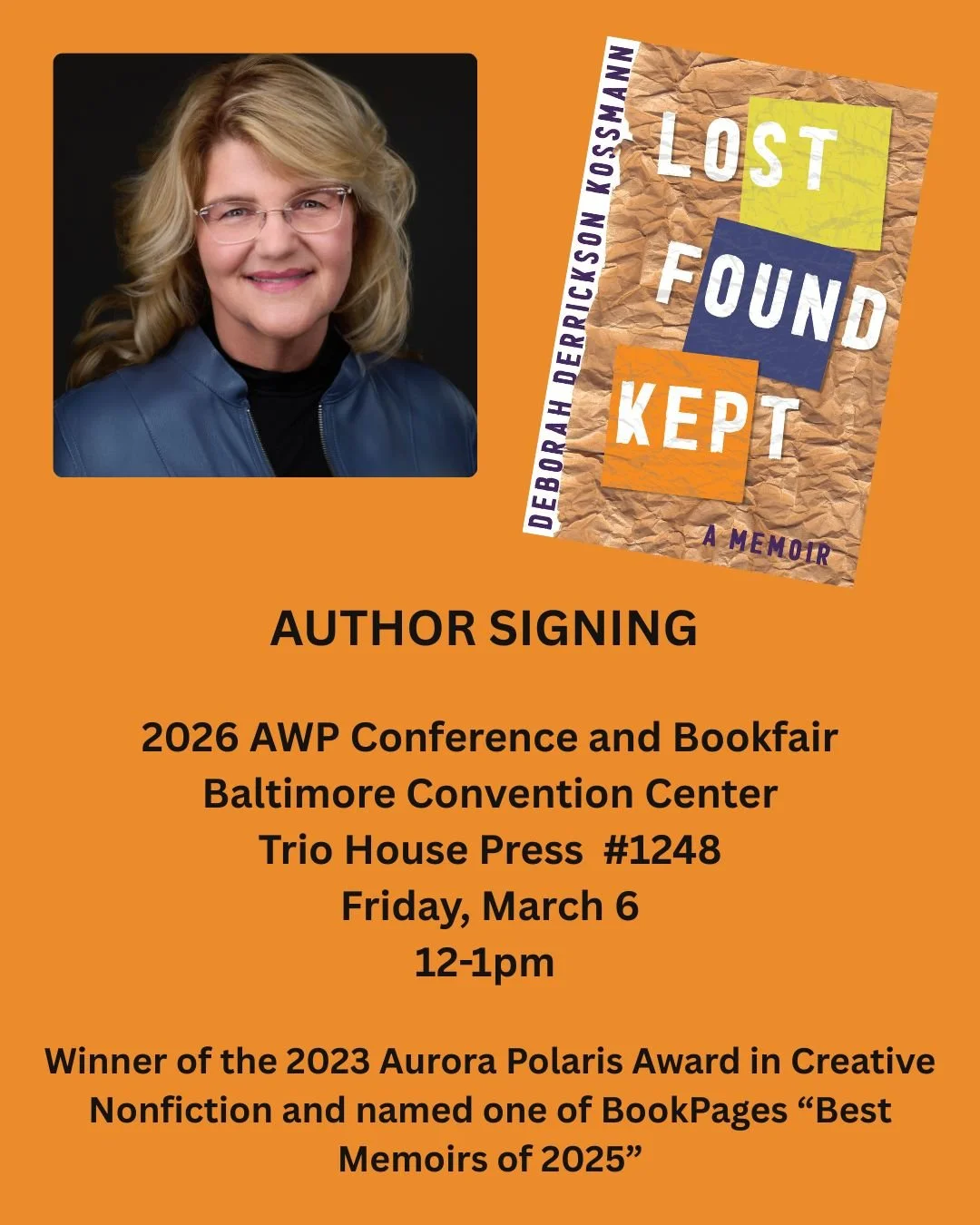 March 10, 2025 - Hippocampus Magazine | INTERVIEW: Deborah Derrickson Kossmann, Author of Lost Found Kept: A Memoir - by Leslie Lindsay