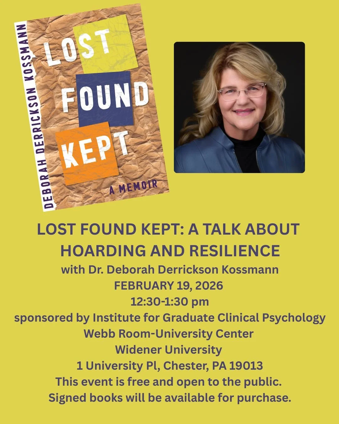 February 19, 2026, 12:30-1:30pm | Lost, Found, Kept: A Talk About Hoarding and Resilience | Widener University Institute For Graduate Clinical Psychology